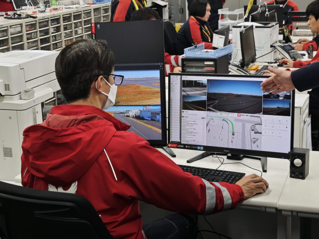 - 人間側を「強制停止」させるインフラ協調: 運行管理システム(FMS)が信号機と連携。自動運転車が交差点を通る際、交差する有人車両側の信号をシステムが自動的に「赤」に変えて物理的に止める仕組みを実装しました。