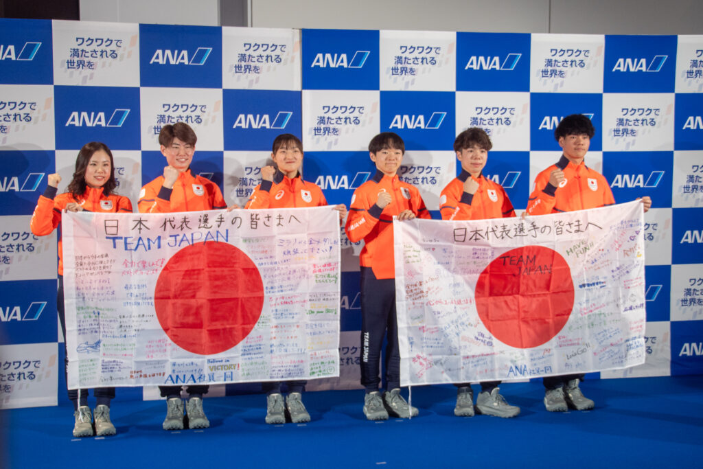 2026年1月28日深夜、羽田空港にて2026年ミラノ・コルティナ冬季オリンピックに出場する日本代表選手団「TEAM JAPAN」の出発セレモニーが開催されました。フィギュアスケートおよびスノーボードの代表選手計6名が登壇し、大会への意気込みを語った後、決戦の地であるイタリア・ミラノへ向けて出発しました。