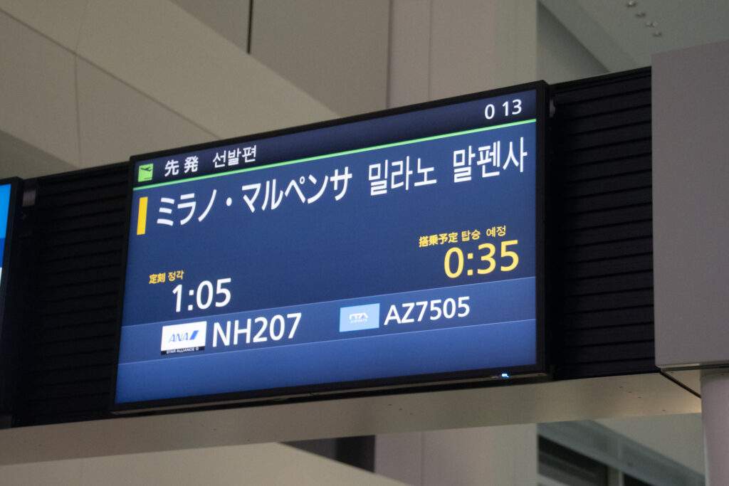 選手団が搭乗したミラノ・マルペンサ国際空港行きのANA207便(ボーイング787-9型機、機体番号JA875A)は、定刻より4分遅れの1月29日午前1時09分にプッシュバックを開始し、同1時22分にC滑走路から離陸しました。当日は199名の乗客が搭乗し、機内はほぼ満席となりました。