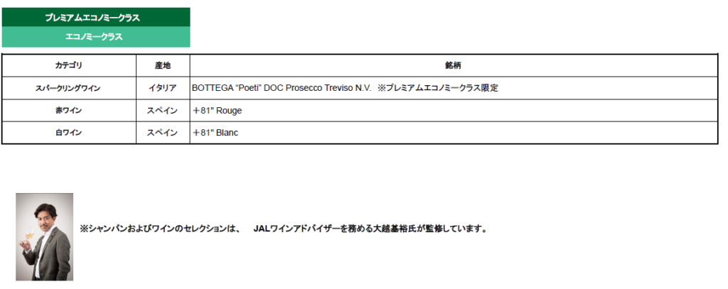 全クラス共通で、ドリンクのラインアップも大幅に拡充されます。JALワインアドバイザーが厳選したワインに加え、プレミアムなノンアルコールドリンク、希少性の高い日本酒、産地・製法にこだわった日本茶などが加わり、幅広い選択肢が提供されます。