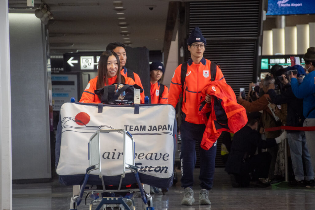 2026年ミラノ・コルティナ冬季五輪に出場したTEAM JAPANの日本代表選手団が2月24日、ミラノ発のANA臨時便で成田空港第1ターミナルに帰国しました。到着ロビーには約400人のファンが集まり、総勢122名(うち選手53名)の選手団を出迎えました。