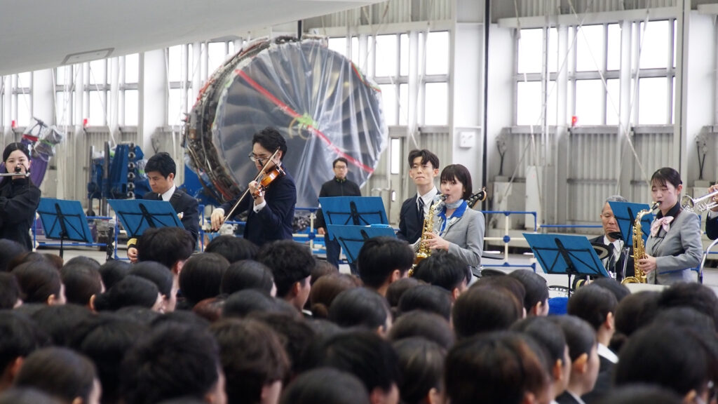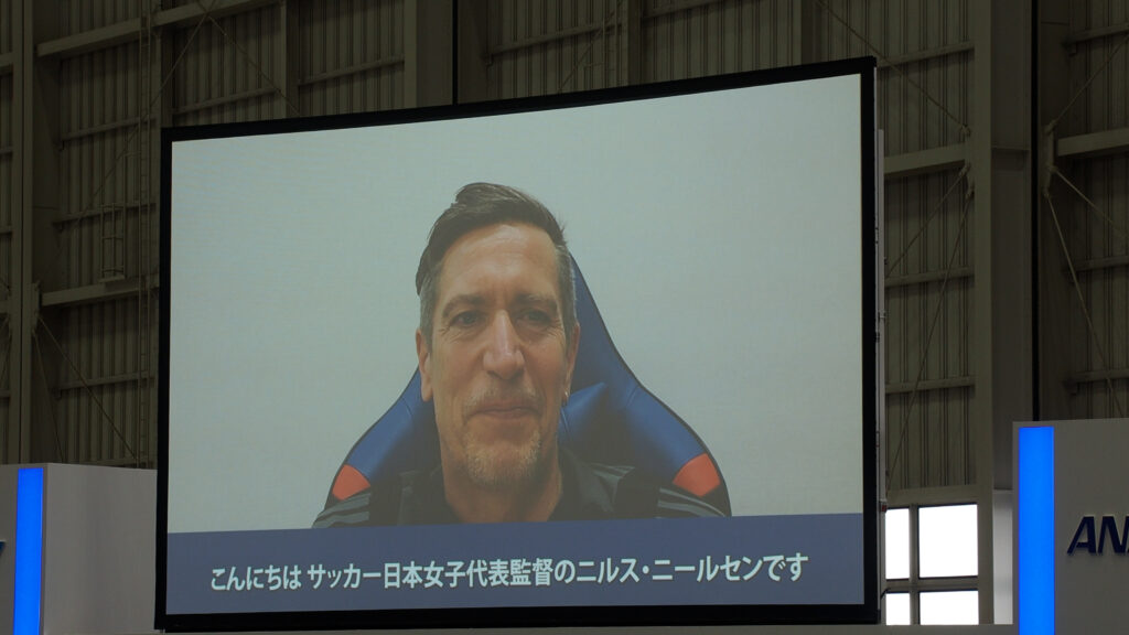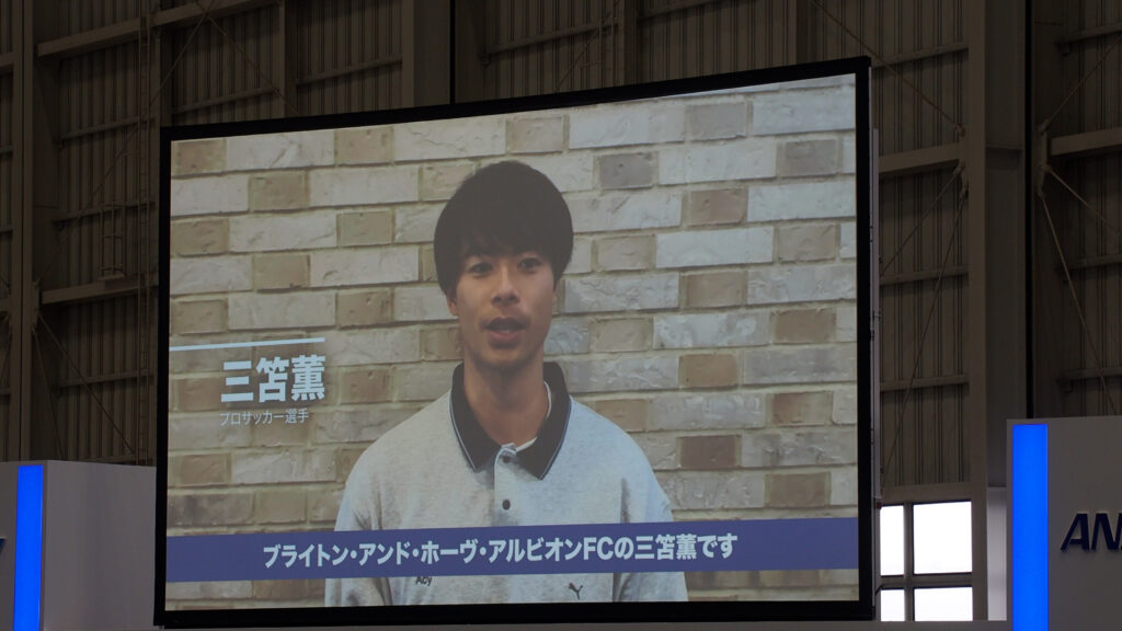 また、社員有志による「ANAチーム羽田オーケストラ」が社歌を生演奏したほか、デーブ・ロバーツ監督(ロサンゼルス・ドジャース)、三笘薫選手(ブライトン・アンド・ホーヴ・アルビオンFC)、堀米雄斗選手(プロスケートボーダー)といった著名人や全国の先輩社員からの歓迎メッセージ動画も上映されました。